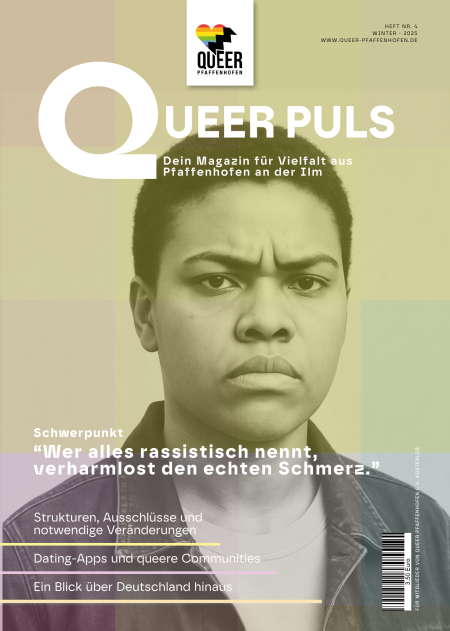 Zweimal im Jahr bringen wir mit QueerPuls die Themen auf den Punkt, die uns bewegen. Unser digitales Magazin bietet spannende Einblicke, lokale Perspektiven und jede Menge Herzblut – informativ, nachdenklich und immer mit dem nötigen Augenzwinkern.